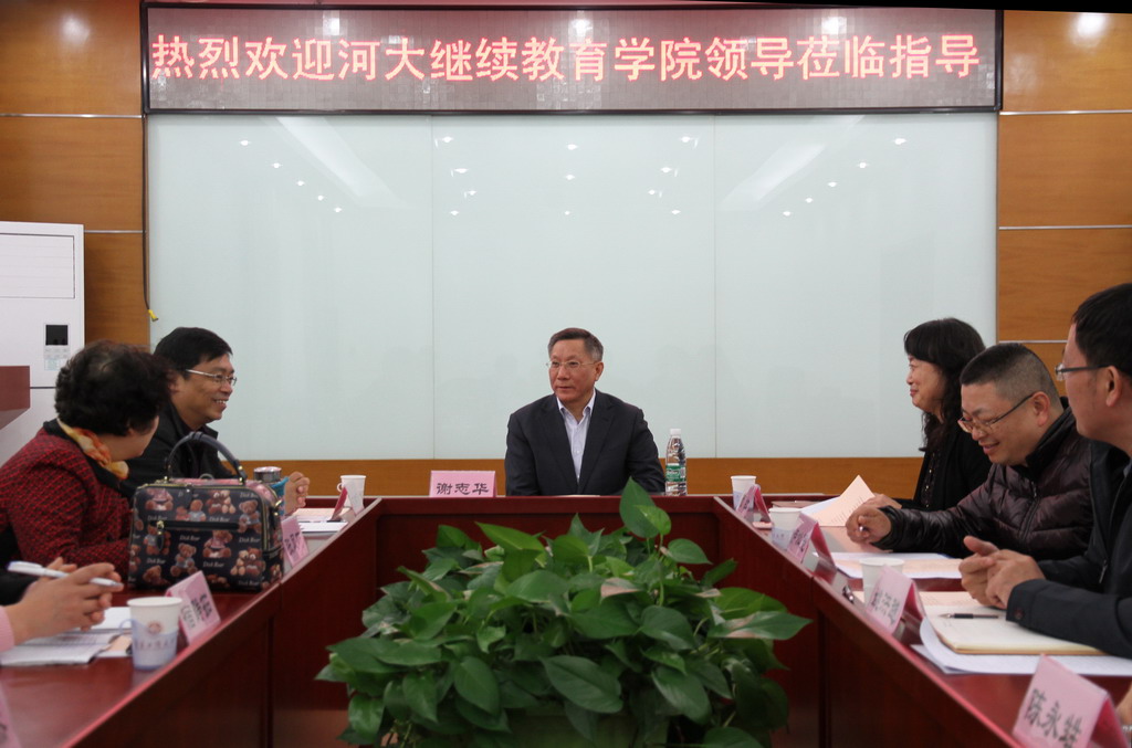 谢志华副校长对河北大学继续教育学院同仁的到来表示欢迎,他希望双方通过工作上的沟通交流,做到有所收获,进一步加强双方之间的交流与合作,为京津冀协同发展做出贡献。